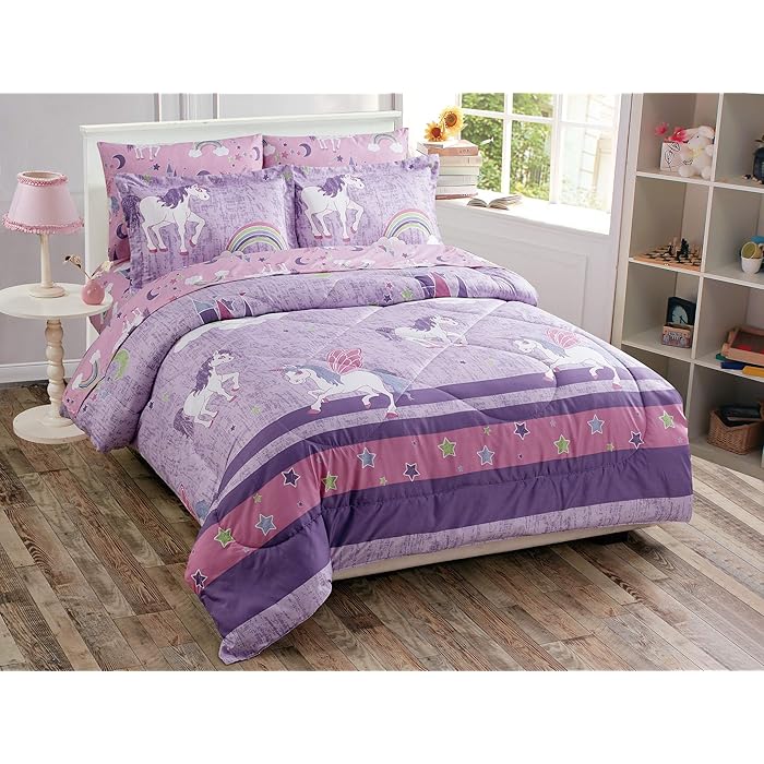 Buy Better Home Style Purple Pink Unicorn Printed Fun Design 7 Piece Comforter Bedding Set With Rainbow And Stars For Girls Kids Teens Bed In A Bag With Sheet Set Unicorn Castle Lavender